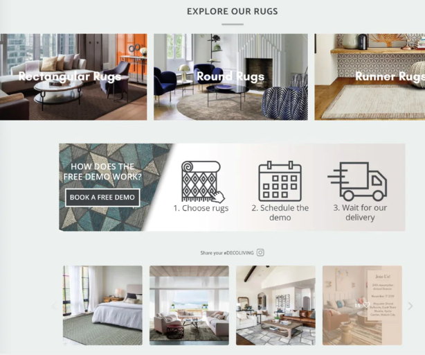 We created a new digital universe and made it possible to select rugs and book demos directly thorugh the website.