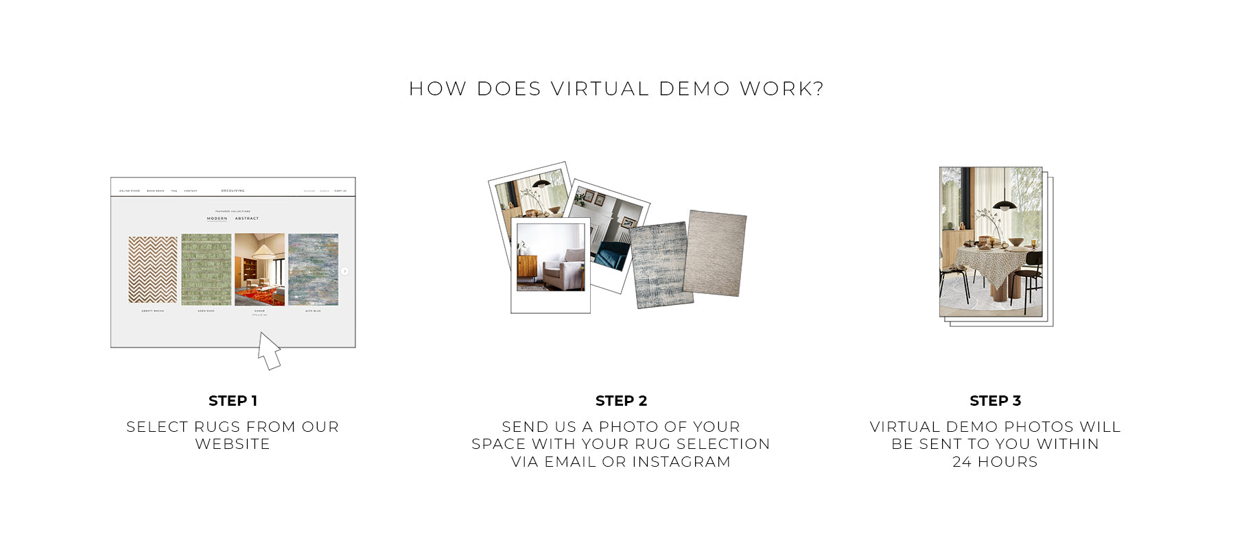 Select one of our rugs and provide a picture of where you want it placed, our designers will create a FREE digital rendering for you.